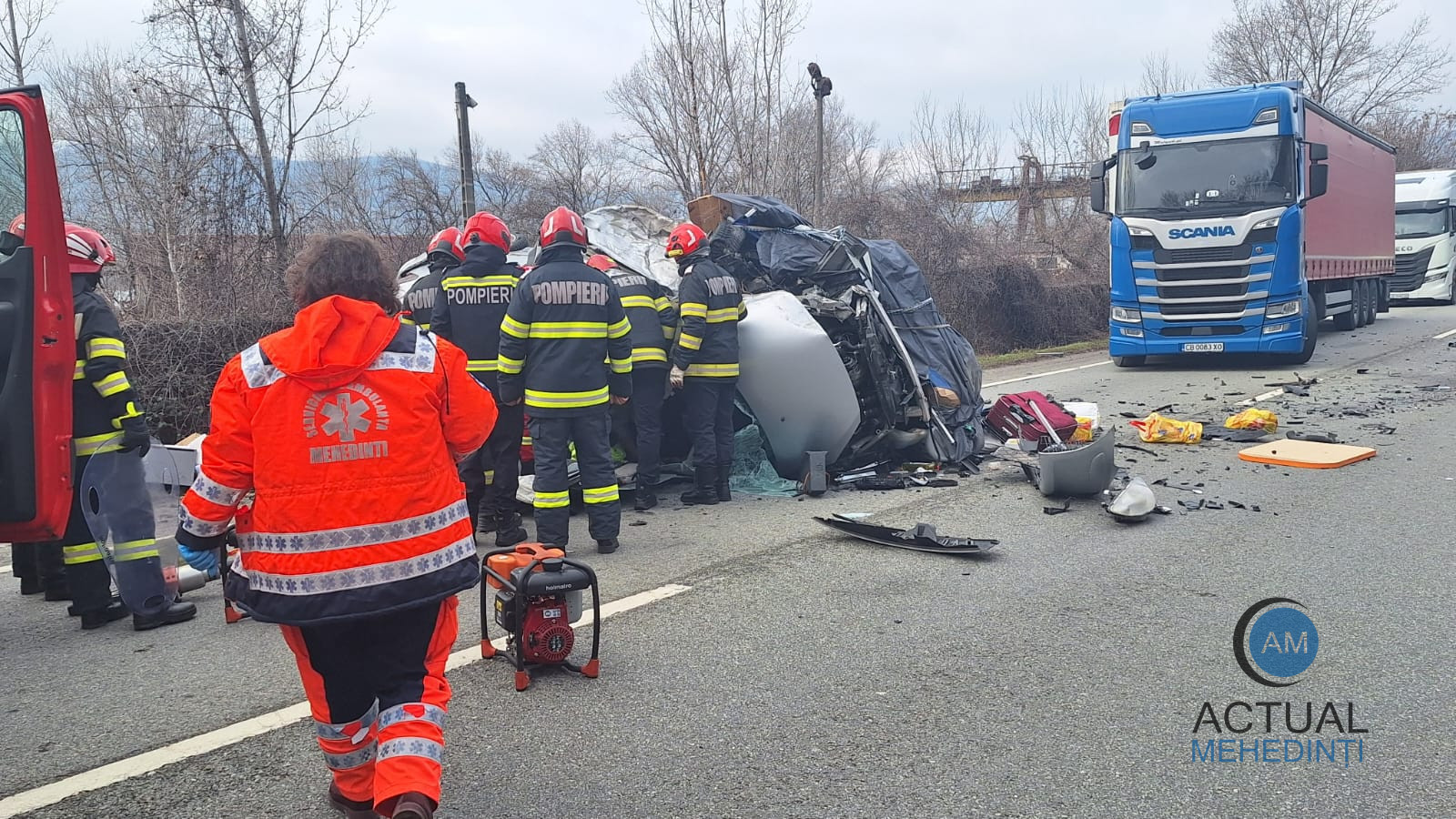 Incidentul s-a petrecut când șoferul autoturismului, care se îndrepta dinspre Drobeta Turnu Severin către Orșova, a încercat o depășire, lovindu-se de autotrenul ce circula pe sensul opus. La fața locului, pompierii Detașamentului Drobeta au mobilizat o autospecială de descarcerare, o autospecială pentru stingere și o ambulanță SMURD, alături de o ambulanță a Serviciului de Ambulanță Județean.