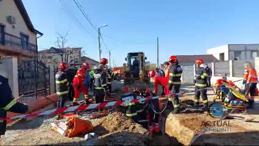 În aceste momente, pompierii asigură malurile de pământ pentru a facilita accesul și extragerea în siguranță a victimei. Operațiunea este complexă din cauza riscului de alunecare a terenului și necesită precizie maximă.